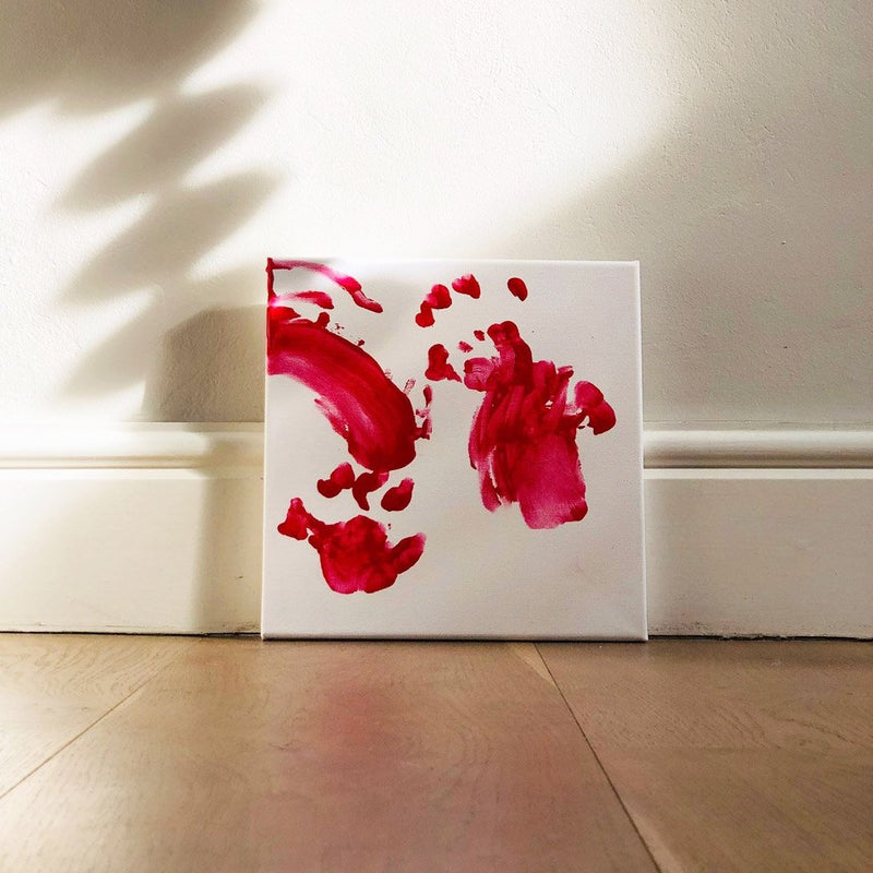 Fabric ready to be painted on as baby's first canvas. One complimentary, non-toxic, 50ml fabric paint jar included.