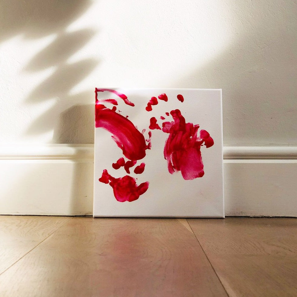 Fabric ready to be painted on as baby's first canvas. One complimentary, non-toxic, 50ml fabric paint jar included.