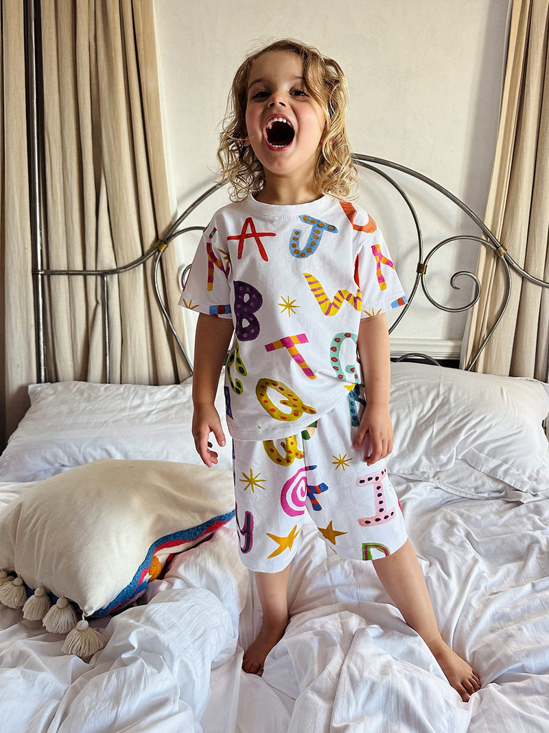 These 100% cotton alphabet pyjamas are the epitome of cool! Inspired by Big Little Store's now-renowned alphabet cushions designed by Andel Olivier, this set is crafted for maximum comfort with a roomy fit, bringing fun and practicality to bedtime. Made to order with care, please allow 6–8 weeks from the date of purchase for delivery.