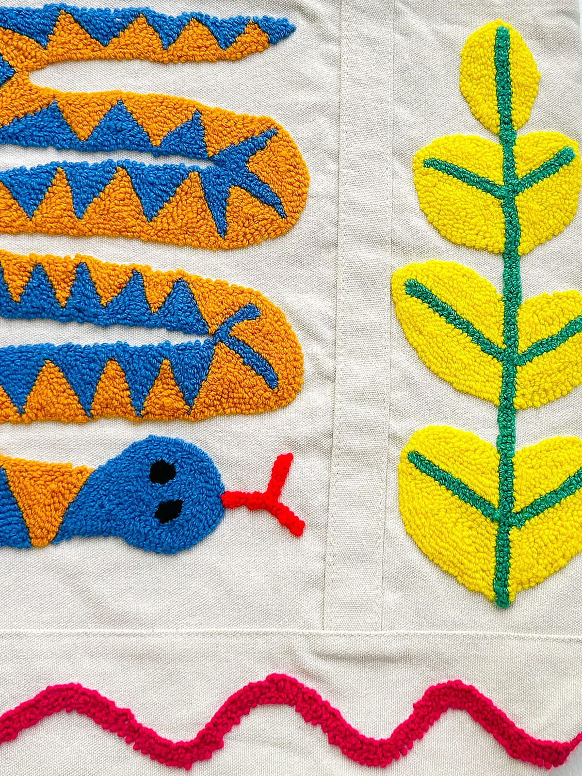 Punch cushion care guide: A little extra care goes a long way in preserving the softness and vibrant colours of your punched cushion. Gentle washing protects its beautiful craftsmanship and helps the planet. Hand wash in cold water, or use a delicate machine cycle at 30°C. Do not bleach to maintain natural colours. Avoid ironing, especially on wool areas, to protect the texture. Air dry only to retain the cushion’s shape and softness.