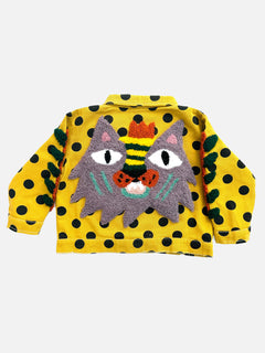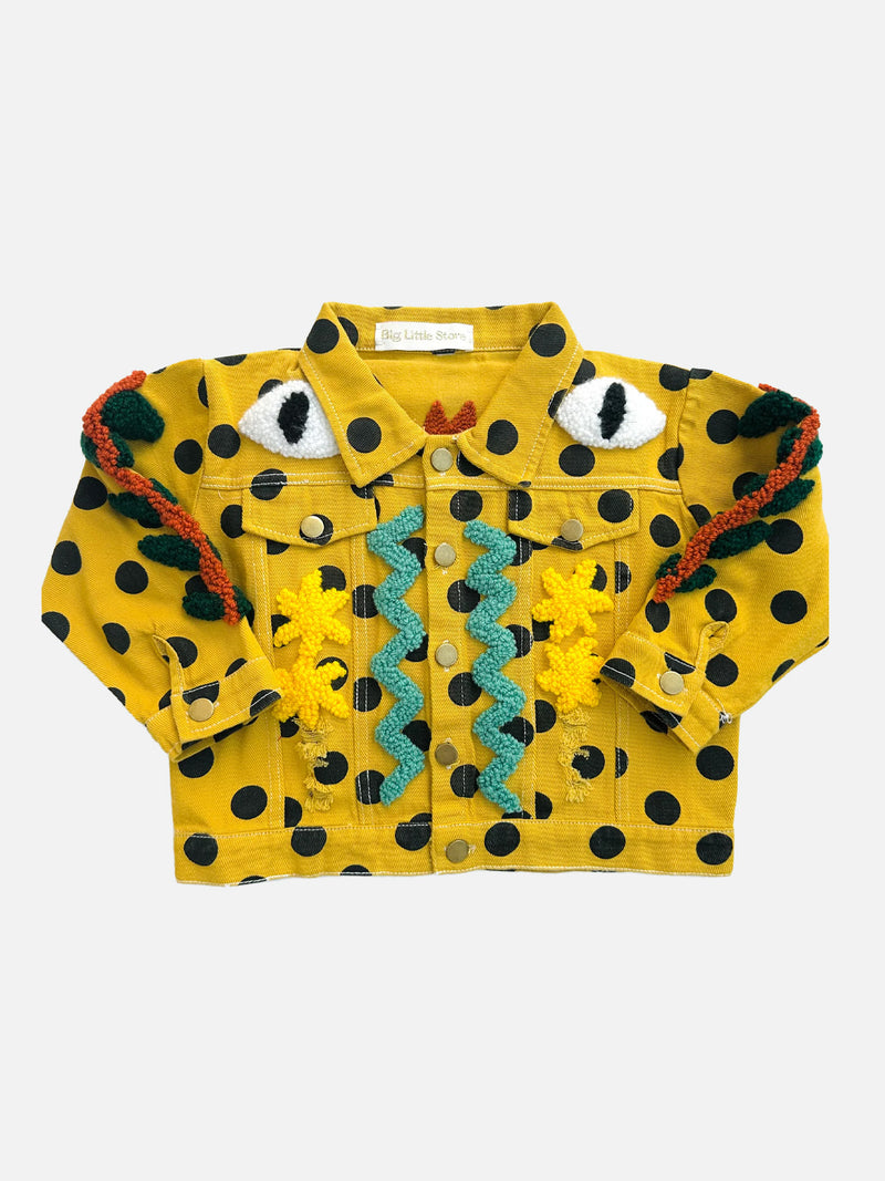 This polka-dot denim jacket is one of a kind, featuring hand-punched embroidery for a unique touch. No two are alike, making each piece a true original. Get yours before it’s gone!