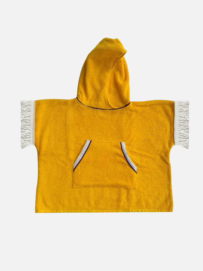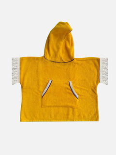 These ponchos are perfect for little summer explorers! Made from soft, cosy towelling with a handy pocket for treasures and a snuggly hoodie for extra cuteness. The playful fringe sleeves add a dash of fun to their sunny-day adventures. In stock and ready to ship!